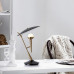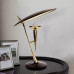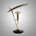 Элегантная настольная лампа в стиле ретро выполнена из полированной латуни с чёрным основанием, что создаёт выразительный контраст. Дизайн отличается необычными геометрическими формами: конусообразный держатель лампы и крупный плоский абажур напоминают эстетику середины XX века. Компактная, но эффектная конструкция станет стильным акцентом на рабочем столе или прикроватной тумбе. Мягкий свет, рассеиваемый абажуром, создаёт уютную атмосферу в интерьере.