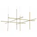 Элегантная подвесная люстра в минималистичном стиле привлекает внимание геометрически чётким дизайном: пересекающиеся золотые и белые стержни создают динамичную композицию. Конструкция выглядит воздушно и лаконично, не перегружая пространство. Светильник не только функционален, но и служит выразительным декоративным элементом, подчёркивающим современный стиль интерьера. Идеально подойдёт для гостиной, столовой или офисного пространства с открытой планировкой.